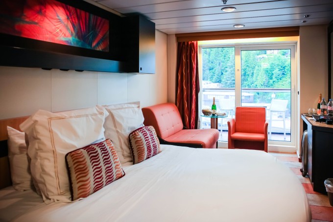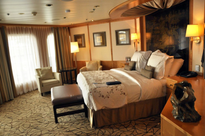 ➤阳台房:配备个人私密的专属观海阳台,两张单人床可转为一张大床。适合老人居住,在舱房内休息时也不容易觉得烦闷。