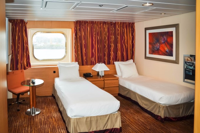 ➤海景房:配备可看到海景的窗户(无法打开),部分房间为圆窗,部分房间为方窗;收合式下铺床两张,可合并成一张大床。除配备窗户外,与内舱房设施相同,但价格稍贵。