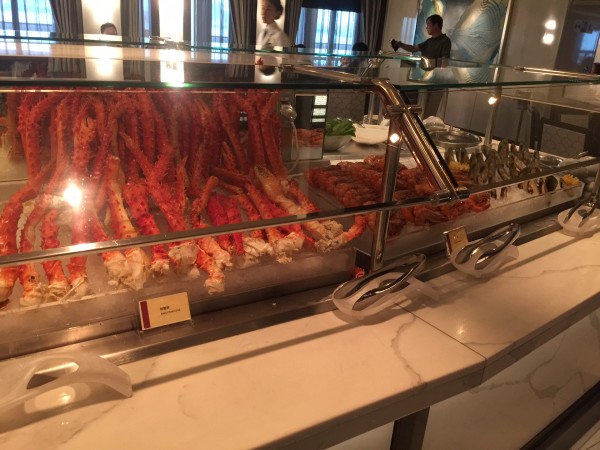 海神餐厅,主食是菜单上的单点一个,自助主要是五种海鲜,生蚝,大虾,雪蟹腿,帝王蟹腿和青口贝。还有一点色拉寿司什么的